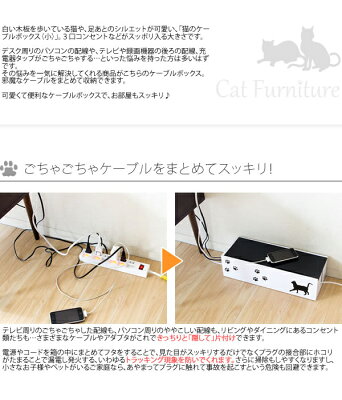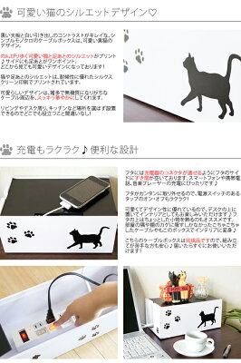 ケーブルボックス 幅25cm コードボックス ケーブル収納 コンセント 配線 小物 雑貨 収納 整理 可愛い かわいい ねこ ネコ 猫 ブラック CTB-151C