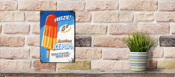 ブリキ看板k アイスキャンデー pop ポスター インテリア スイーツ シャーベット かき氷 夏 風物詩 ひんやり 涼しい カラフル グッズ 小物 アメリカン雑貨 絵画 一人暮らし 店舗用 ポイント消化 メール便可